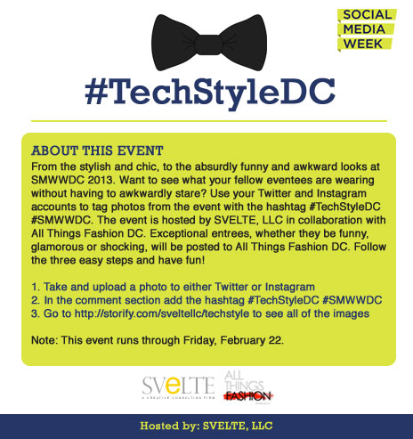 Starting tomorrow (which is #DigitalSisterhood Wednesday on Twitter — appropriate don’t you think?), I’ll be live tweeting from several Social Media Week DC events. See my schedule below. My live tweets will include key takeaways from sessions and photos of DC’s Tech Style. Be sure to follow me on @digitalsisterhd. Also, follow @smwwdc and the hashtag #smwwdc to stay updated on all Social Media Week DC events.