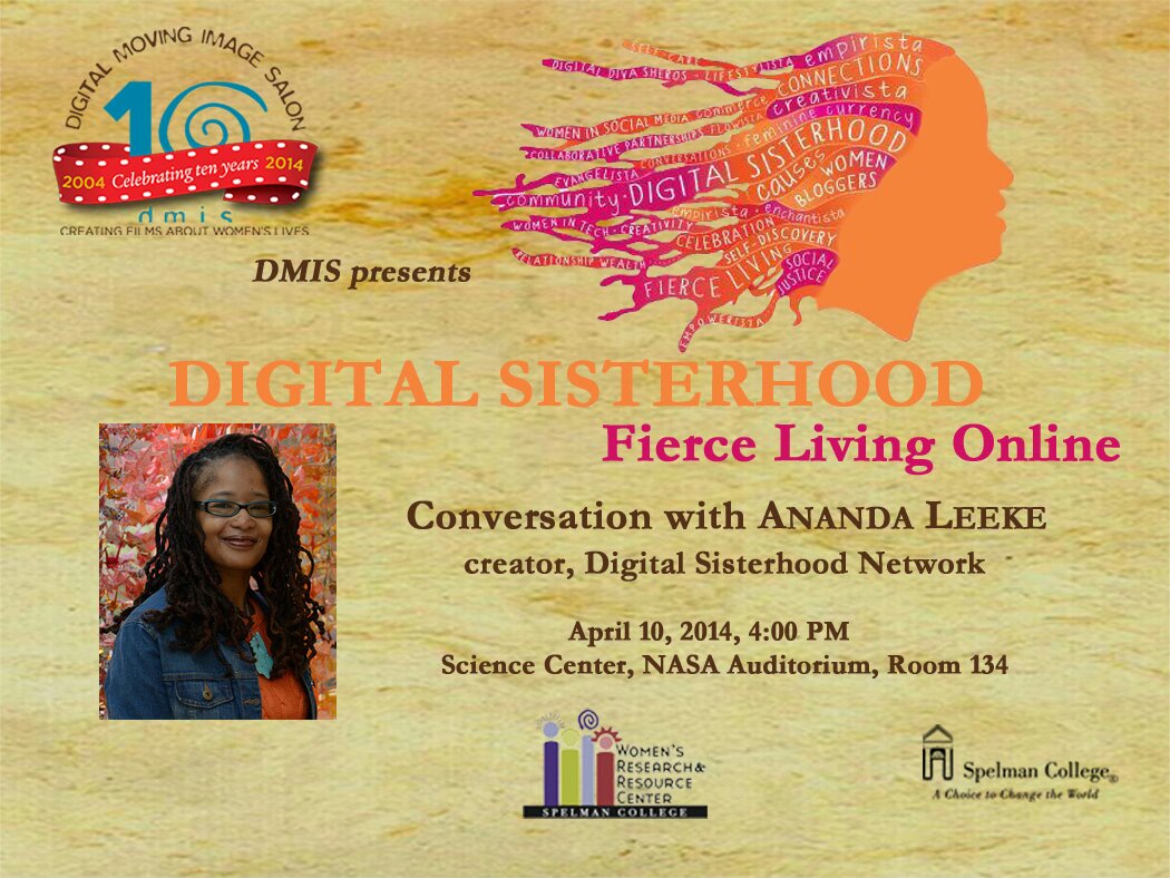 I am headed to Atlanta this week to participate in a conversation about fierce living online on April 10 with my digital sister, Dr. Ayoka Chenzira, founder of Spelman College’s Digital Moving Image Salon. We’ll be talking about digital sisterhood and social media too. Copies of my new book, Digital Sisterhood: A Memoir of Fierce Living Online will be available for sale. If you are in Atlanta, plan to attend the event which will be held at 4:00 p.m. in the NASA Auditorium in Spelman’s Science Center, 350 Spelman Lane, SW, Atlanta, Georgia.