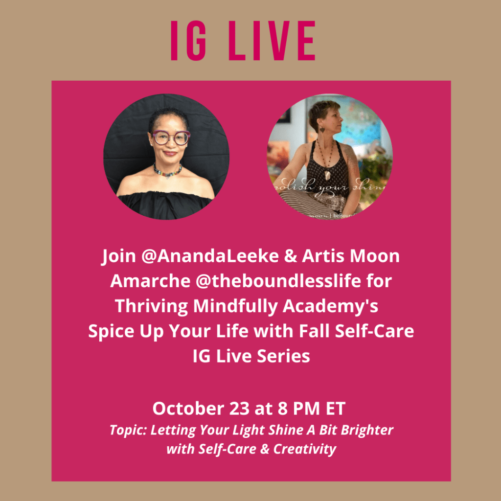 The Fall season is a great time to spice up your self-care practices. Join me and my amazing “soul love” friends for some powerful conversations during the Spice Up Your Life with Fall Self-Care IG Live Series on October 20-27.