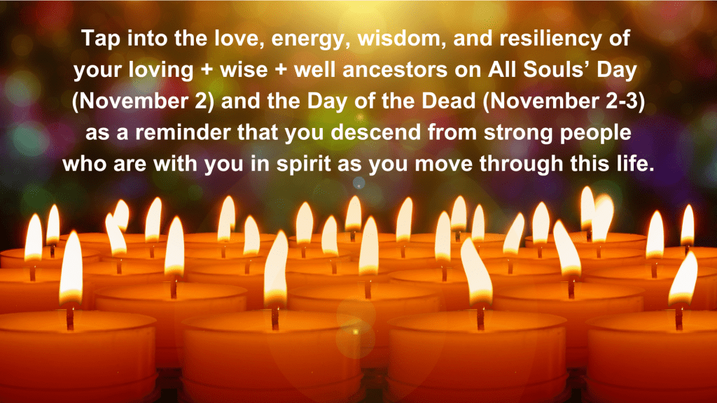3) Honor your loving + wise + well ancestors on All Souls’ Day and the Day of the Dead