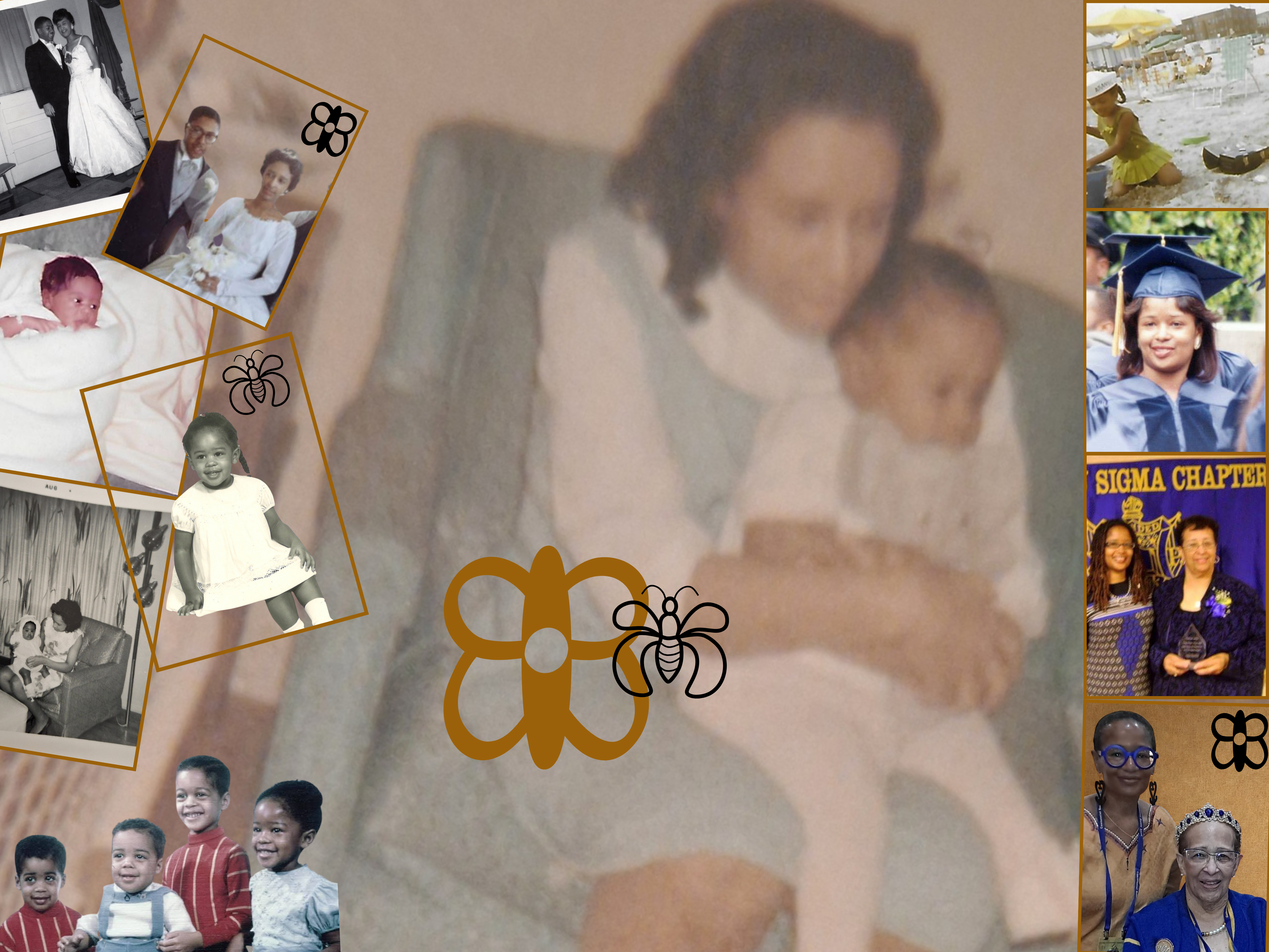 This collage honors five generations of my womanline on my mother Theresa’s side. They include photos of my great-great grandmother Ida Mae Goins Bolden, great grandmother Iona Hazel Bolden Johnson King, grandmother Dorothy Mae Johnson Gartin, mother Theresa B. Gartin Leeke, and me.