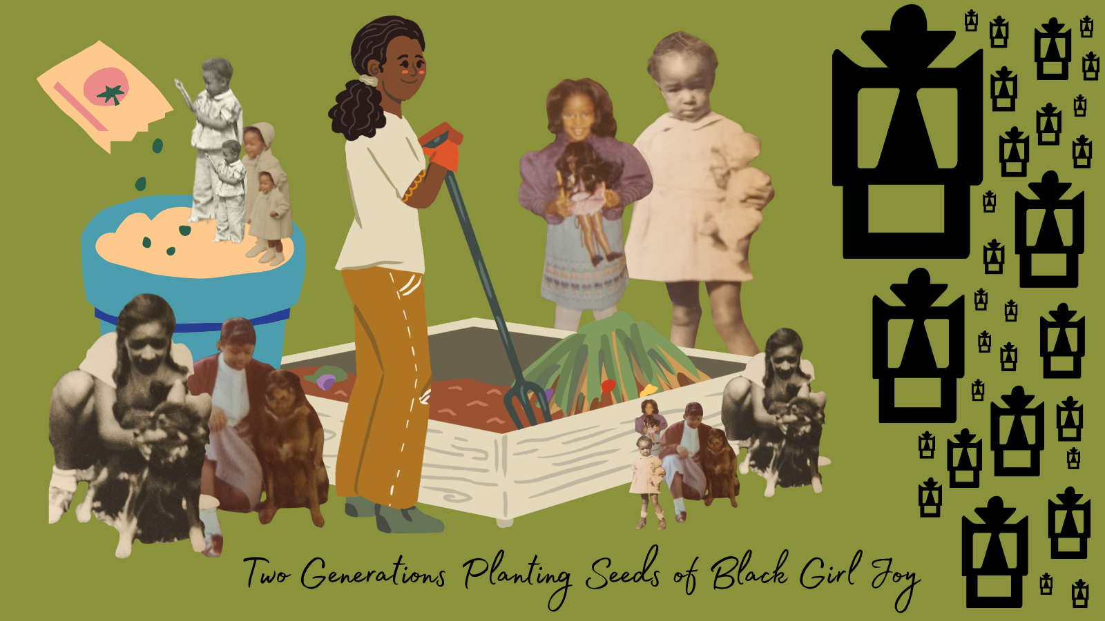 PLANT is the prompt for #Februllage Day 11. My collage is entitled “Two Generations Planting Seeds of Black Girl Joy.” It explores two things that brought joy to my mother Theresa and I during our girlhoods: playing with our dolls and dogs. I included photos of us with our favorite dolls and dogs in the collage.