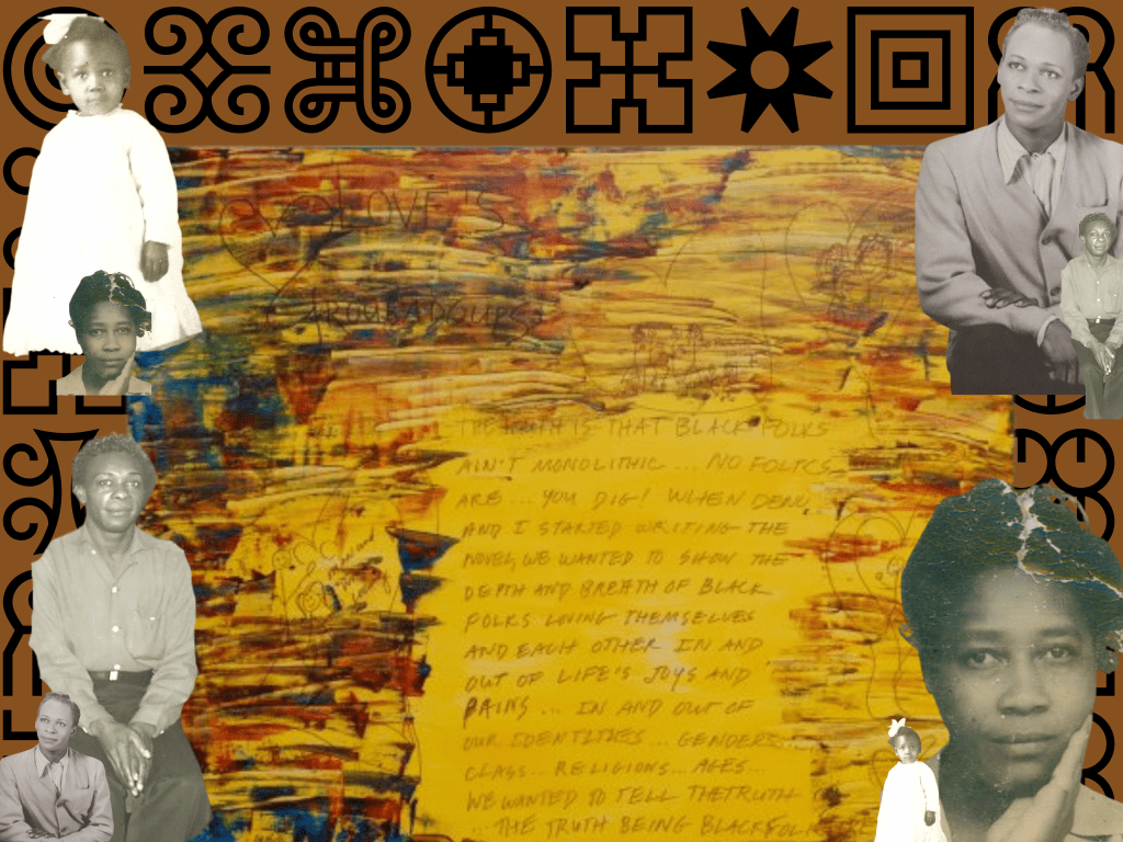 “Black folks ain’t monolithic. No folks are. You dig! When Deno and I started writing the novel, we wanted to show the depth and breath of Black folks loving themselves and each other in and out of life’s joys and pains… in and out of our identities… gender… class… religions… ages. We wanted to tell the truth that Black folks are love’s troubadours.”