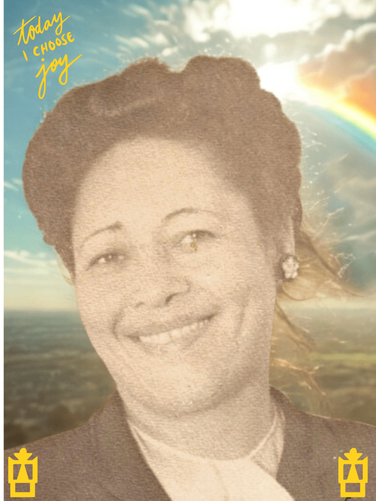I decided to use a 1940s photo of my grandaunt Paulyne Roberts smiling. Aunt Paul was a second grandmother to me. Everytime I see her photo, I think her smile is filled with Black woman joy.