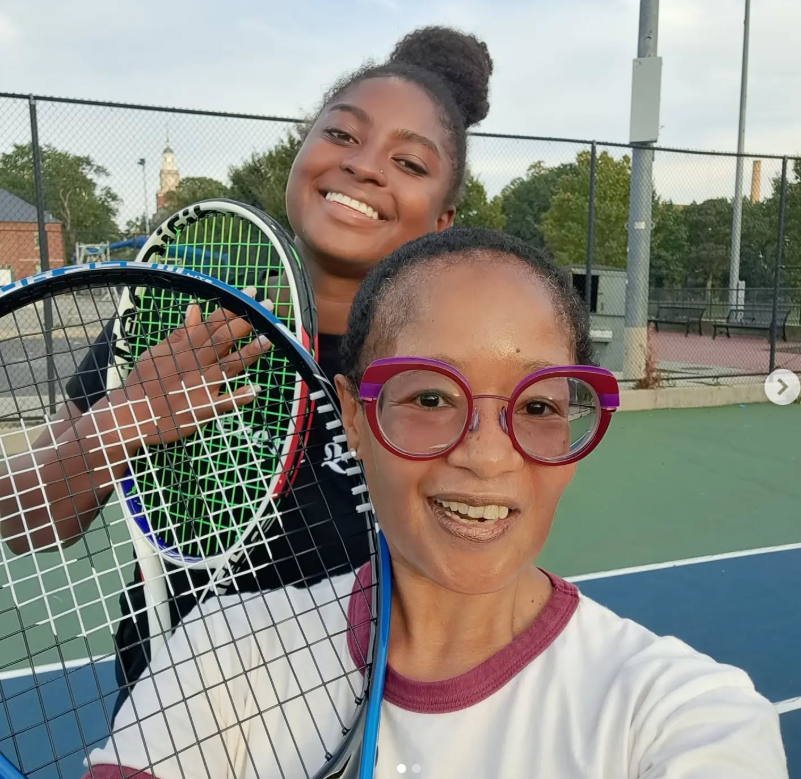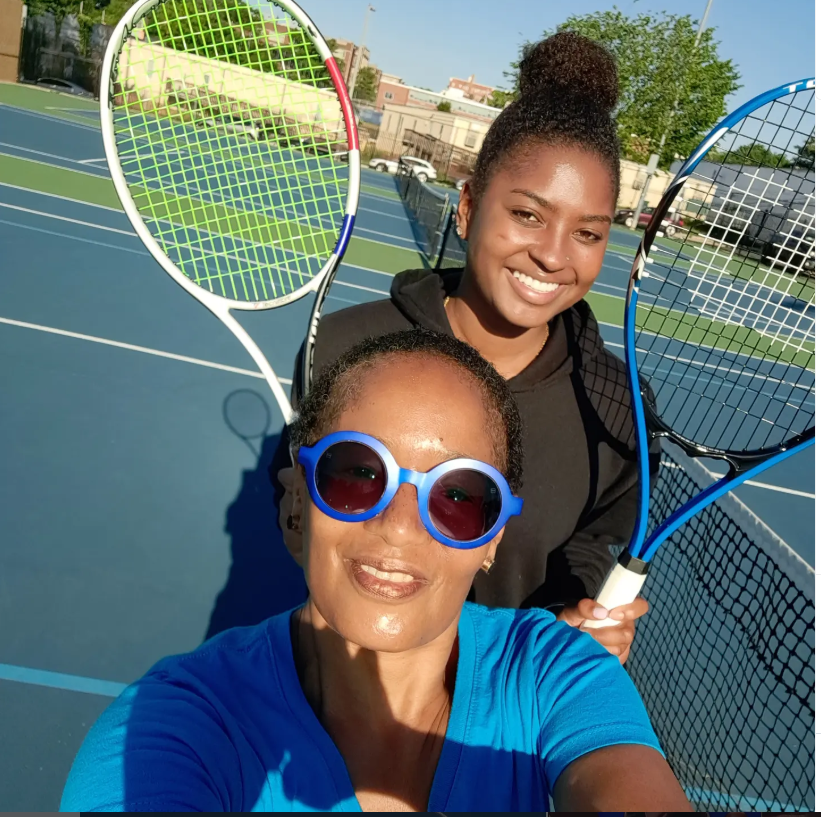 Tennis has always been a sport I wanted to learn as an adult. During the global pandemic, I decided to take lessons and become a beginner player. My soul sistalove Tonya (see in the third photo above) encouraged me. Tonya is an intermediate player and “tennis momma” with many years of experience due to her son’s tennis playing years.