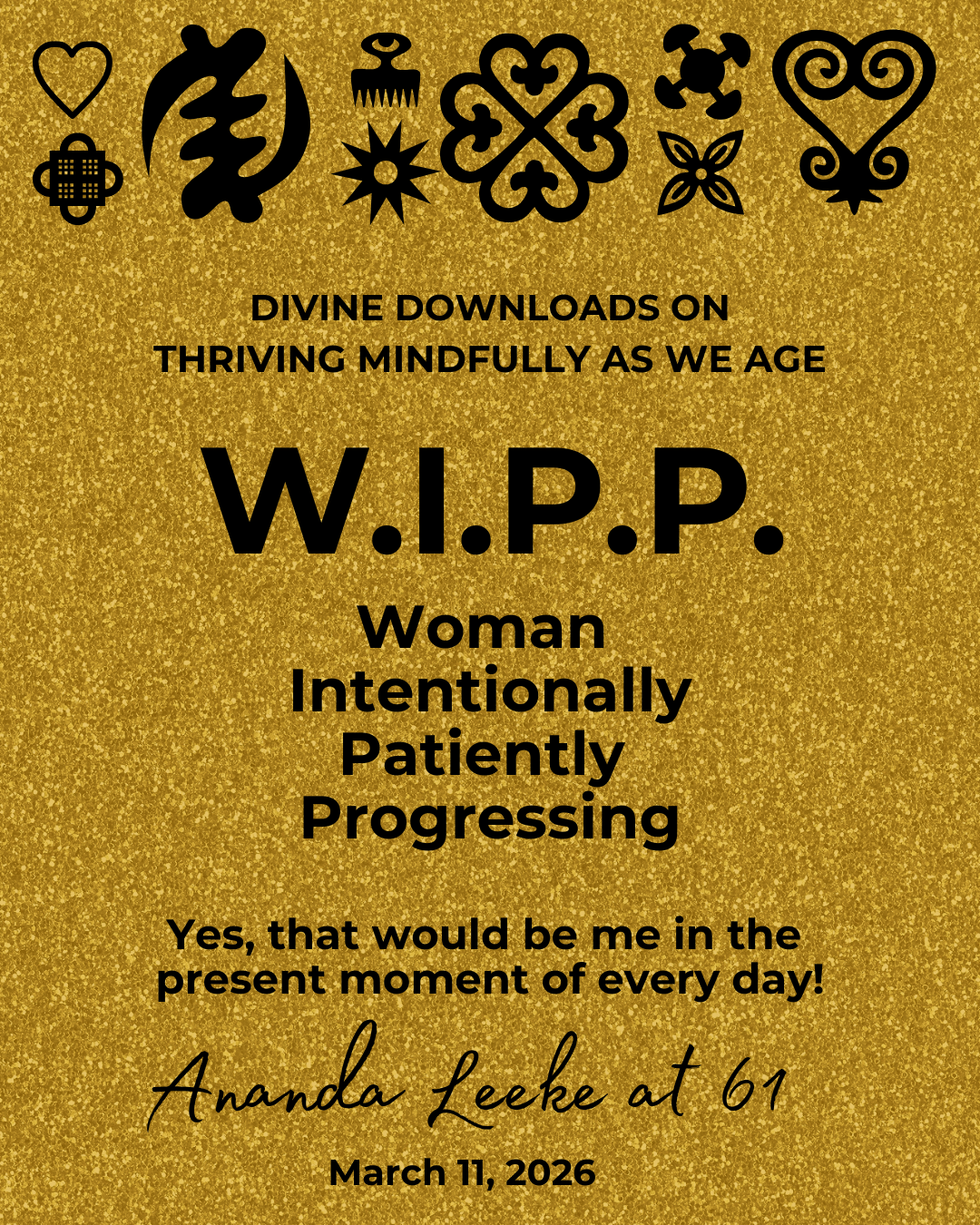 Loving, knowing, trusting, accepting, and valuing myself at 61 is an ongoing W.I.P.P. journey. WomanIntentionallyPatientlyProgressing Rate this:Share this: Print (Opens in new window) Print Share on Facebook (Opens in new window) Facebook Share on X (Opens in new window) X Share on Reddit (Opens in new window) Reddit Email a link to a friend (Opens in new window) Email Share on Pinterest (Opens in new window) Pinterest Share on LinkedIn (Opens in new window) LinkedIn Share on Tumblr (Opens in new window) Tumblr Like Loading... Related