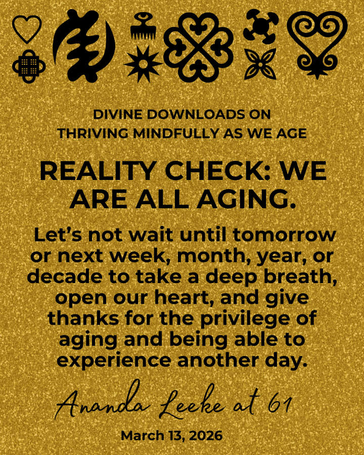 As I sat with this joy in the morning’s stillness, I received several divine downloads of wisdom on aging that I thought you might enjoy reading. Read the graphics below and let me know what you think in the comment section.