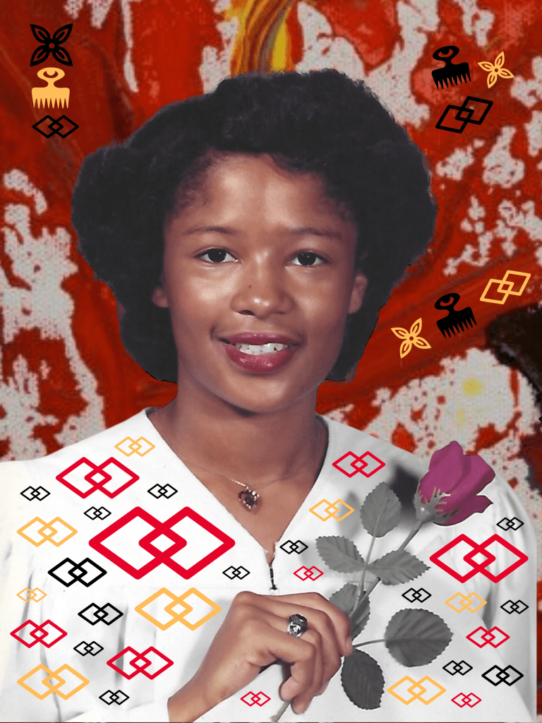 The Duafe (the comb) Adinkra symbol represents femininity and beauty and illustrates my desire to be, feel, and look feminine, stylish, and beautiful.