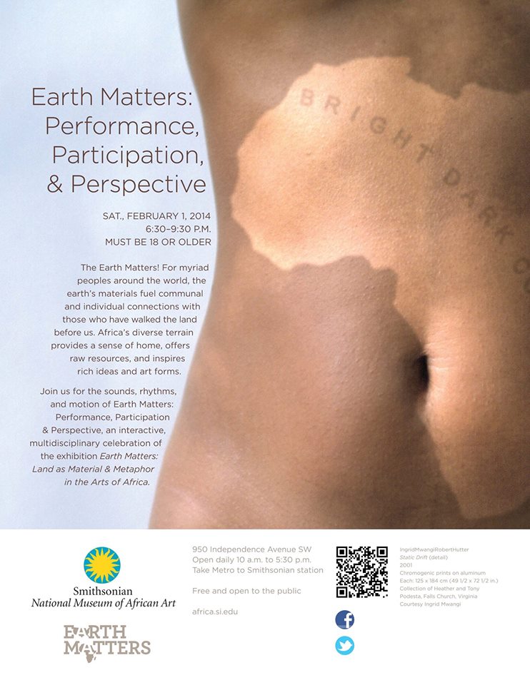 Each month, I schedule several artist dates. I started this month with an artist date to the National Museum of African Art’s Earth Matters celebration and exhibition on February 1. It was just what I needed: spoken word, live DJs spinning groovy music (yes I love the word groovy!), photographers taking photos (will blog about my own experience next week), body art performers, African dancing and drumming, live bands performing incredible music, and a documentary film about Kenyan feminist and human rights activist, Wangari Maatthai.