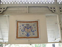 Voodoo Flag featuring Haitian goddes of love Erzulie's veve at Hotel Oloffson in Port-au-Prince, Haiti