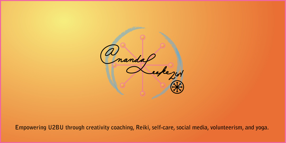 I also have a new and improved short bio: Yoga + Creativity + Internet Geek = Ananda Leeke. Leeke is a lawyer turned “Jill of many trades”: innerpreneur, author, artist, coach, and yoga teacher. Her mission is “Empowering U2BU through creativity coaching, Reiki, self-care, social media, volunteerism, and yoga.”